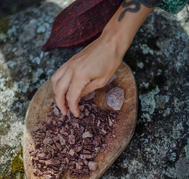 This is the bean in its potent, whole-state form—a complex plant medicine that bridges the gap between the physical body and creative clarity. Unlike processed derivatives, this ceremonial-grade cacao acts as a gentle yet profound catalyst, stabilizing the nervous system while heightening sensory perception. Through a ceremonial approach to cacao drink, we enter a state of deep presence. It is a functional ritual of connection - softening the internal noise to allow inspiration, love, connection to nature and inner truth to emerge as the dominant frequency.